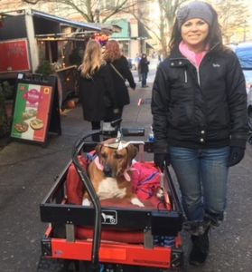 Riley was only 4 months old when Jonathan and Jennifer adopted her from a local rescue group.. Jonathan and Jennifer love to travel, hike and spend time at the beach. Riley went on all of their journeys. Then in 2016, Riley began to show the early signs of Degenerative Myelopathy. Over the next 6 months her hind legs slowly became paralyzed. DM is a progressive disease of the spinal cord that paralyzes a dog’s hind limbs, then travels to the front limbs and ultimately attacks major organs. “Watching her lose her ability to walk was heartbreaking” said Jonathan. We always said when she’s done walking we have to put her down. Then a YouTube video changed our mind. We chose to keep fighting; her mind and upper body were normal. Jonathan explained that one day he randomly met Joe, the electric cart maker. Joe lives in LA and manufactures the Sandhopper beach wagon. His electric cart is typically purchased by people who need a motorized cart for hauling around beach gear. When Joe heard that Jonathan wanted one for Riley, he jumped at the chance to get the paralyzed dog mobile again. Joe outfitted Riley’s cart so it can travel 5+ miles without needing a recharge. He installed a spot light for nighttime walks and added features to keep Riley safe on all terrains. “She instantly loved it,” said Jonathan.. Riley goes to the beach, hiking and anywhere we go. This cart has given us all our freedom.