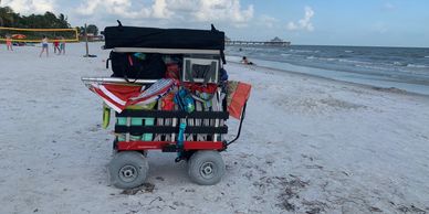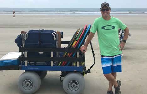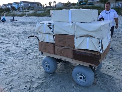 Rob McDowell uses his Sandhopper to move 40+ wooden chairs to set up for his beach wedding business. According to Rob, business is so good he'll need another wagon next year!
