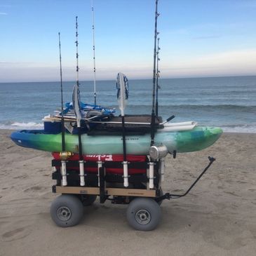 Bruce Little loves to fish and his Sandhopper allows him to roam the beach for ideal conditions to launch his kayak. He is extremely well equipped!
